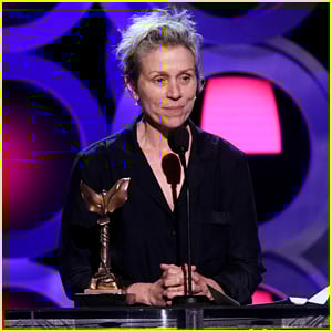 Frances mcdormand accepting the award for best actress for her role in three billboards outside ebbing, missouri, at the 75th annual golden globe awards.